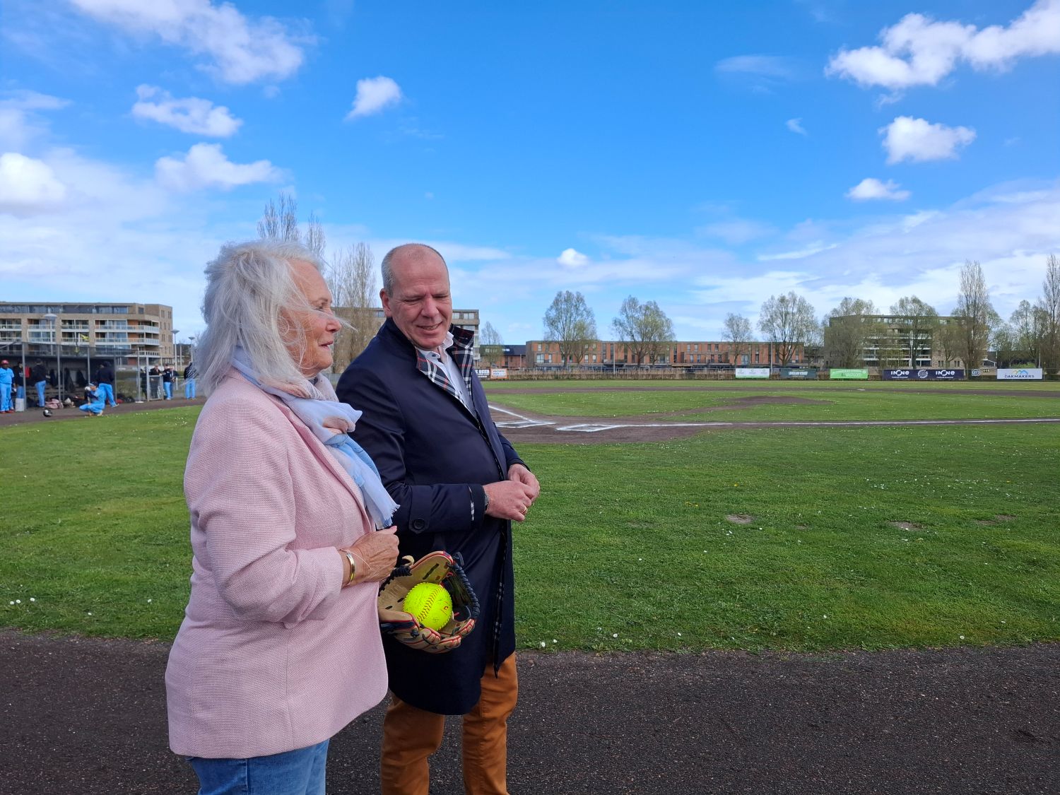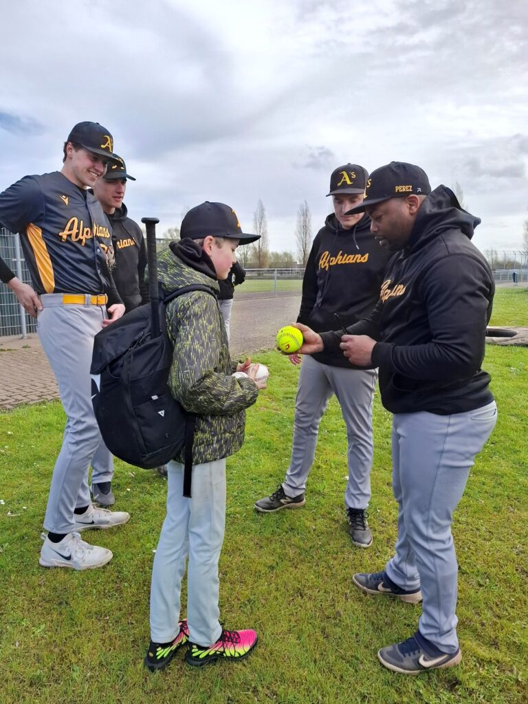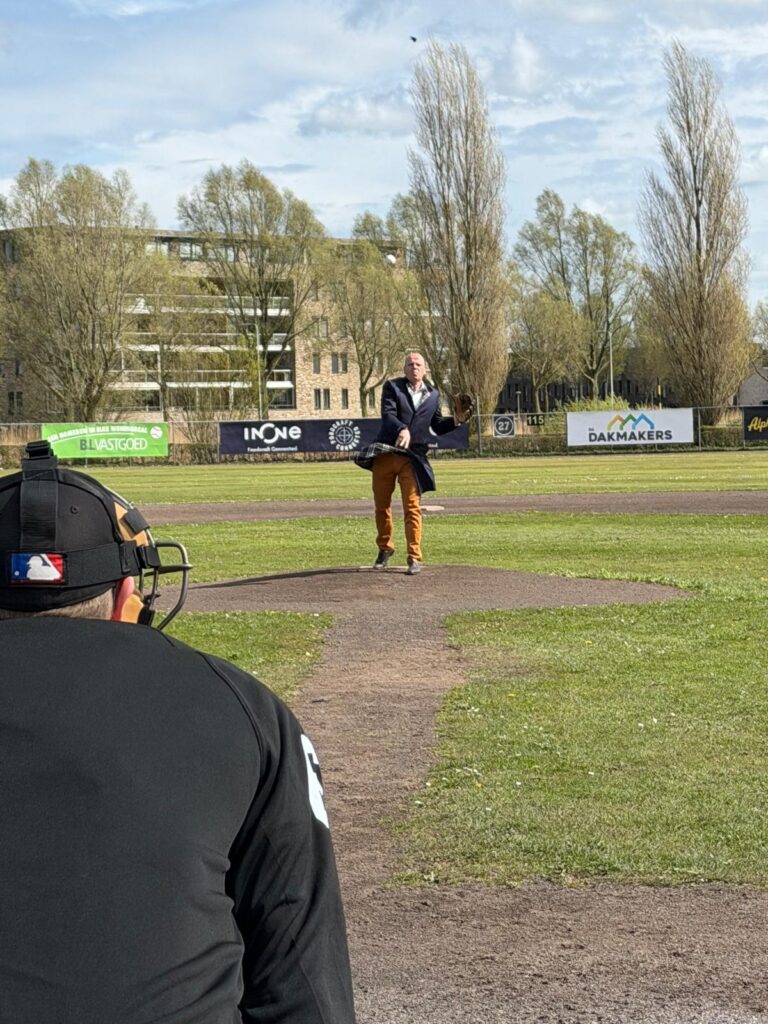 Alphians kijkt terug op een prachtige seizoensopening. Niet alleen versloeg Heren 1 overtuigend Zwijndrecht, ook zorgden drie bijzondere gasten voor een feestelijke Opening Day. Wethouder Gert-Jan Schotanus, Ben Ponsioen (oprichter Alphians) en Irene Ponsioen (de eerste pitcher van de softbaldames in 1976) wierpen de ceremoniële first pitch.